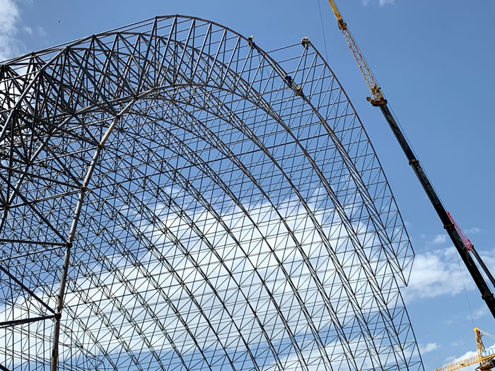 (2)网架加工前应对现场尺寸进行复测,确认无误后方可进行加工、安装;网架制作、运输、安装应遵守《空间网格结构技术规程》JGJ7-2010、《钢网架鹤壁螺栓球节点》JG/T 10-2009、《钢网架鹤壁螺栓球节点用高强度螺栓》 GB/T 16939-2016、《鹤壁钢结构鹤壁工程鹤壁施工规范》 GB50755-2012、《鹤壁钢结构鹤壁工程鹤壁施工质量验收标准》 GB50205-2020。